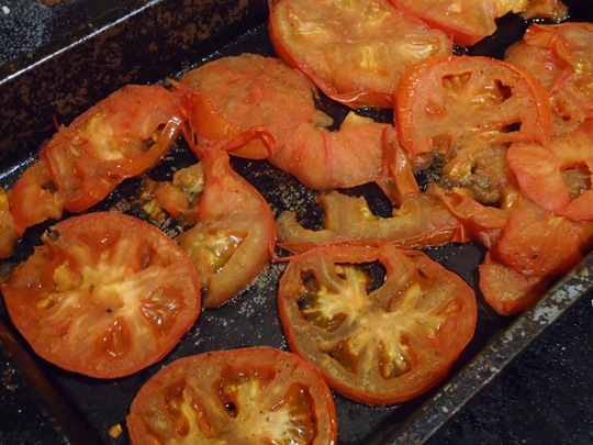 Tomatoes are also wonderful when baked til golden (and more flavorful in this off-season).